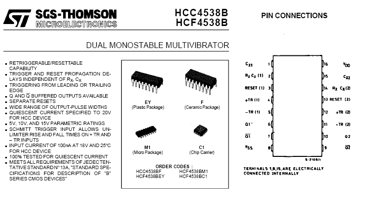 4538BP DUAL MONOSTABLE MULTIVIBRATOR DIP16