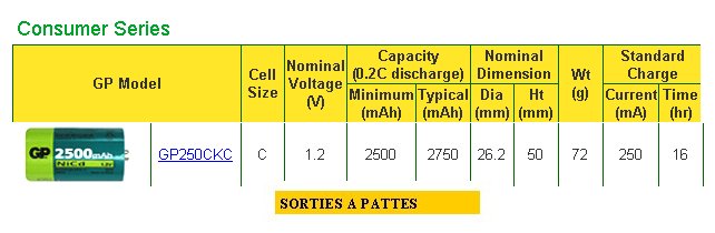 > > > > Accu 1,2 Volts 2500 mAh NICD LR14 GP à pattes