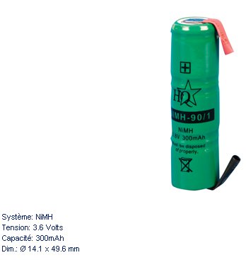 > > > > ACCU 3,6V 300mA NIMH 14.1 x 49.6 mm SORTIE PATTES