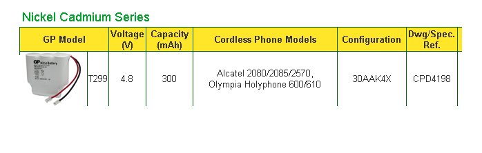 > > > > Accu NICD Téléphone type 4 x 1/2 R6 - 4,8 Volts 300 mAh