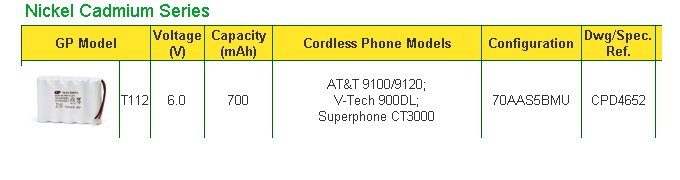 Accu NICD téléphone type 5 x R6 - 6 Volts 600 mAh