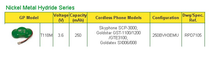 > > > > Accu NIMH Téléphone type trèfle 3,6 Volts 250 mAh