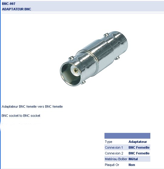 Adaptateur BNC Femelle / BNC Femelle Droit