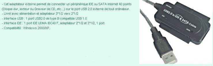 ADAPTATEUR EXTERNE USB2.0 VERS IDE+SATA