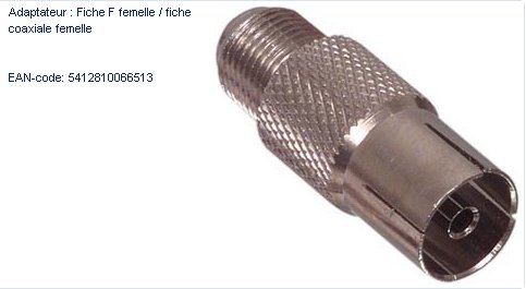 ADAPTATEUR FICHE F FEMELLE / FICHE COAXIALE 9.52 mm FEMELLE
