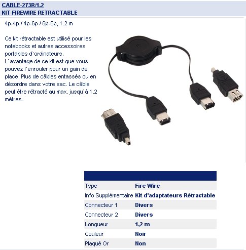 > > > > Adaptateur firewire multiple 4p-4p / 4p-6p / 6p-6p, 1.2 m