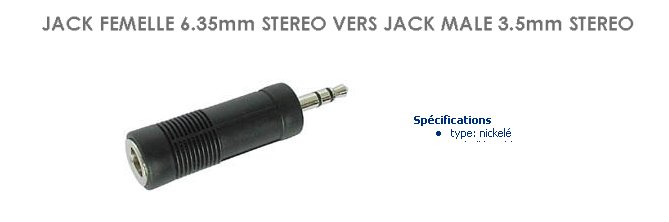 > > > > ADAPTATEUR JACK 3,5 MALE stereo / JACK 6,35 FEMELLE stereo