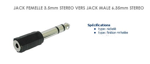 ADAPTATEUR JACK 3.5 FEMELLE stereo / JACK 6.35 MALE stereo