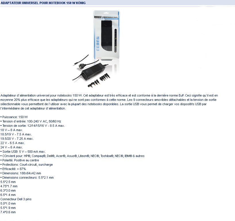 ADAPTATEUR SECTEUR 12V A 24V 150 W 9 FICHES FOURNIES