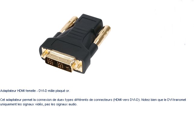 ADAPTATEUR VIDEO DVI 29 PINS MALE / HDMI FEMELLE