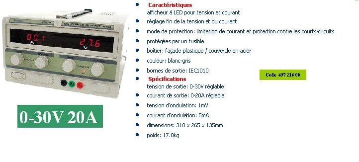 Alimentation 0 à 30 Volts 20 Ampères PS3020