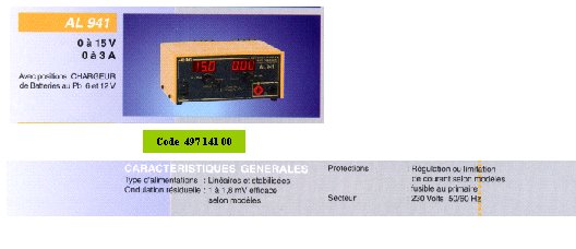 Alimentation 1 à 15 Volts 0 à 3 Ampères AL941