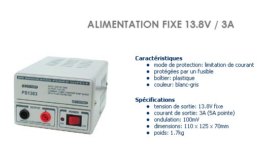 > > > > Alimentation 13,8 Volts 3 à 5 Ampères PS1303