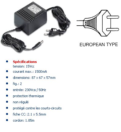 ALIMENTATION 15Vcc 1.5A PS1515