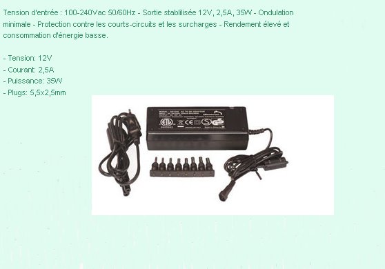 ALIMENTATION A DECOUPAGE 12VCC / 2.5A EMBOUT 5.5 X 2.5mm