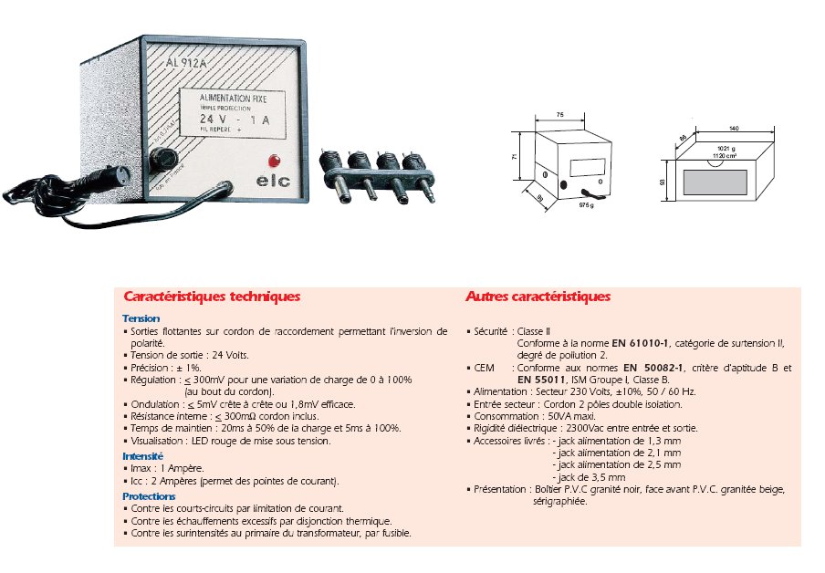 Alimentation fixe 24 Volts 1 Ampère AL912