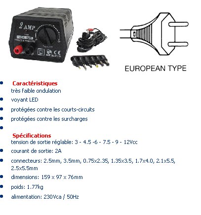 Alimentation secteur stabilisée 3 Volts à 12 Volts 2 Ampères PS2122
