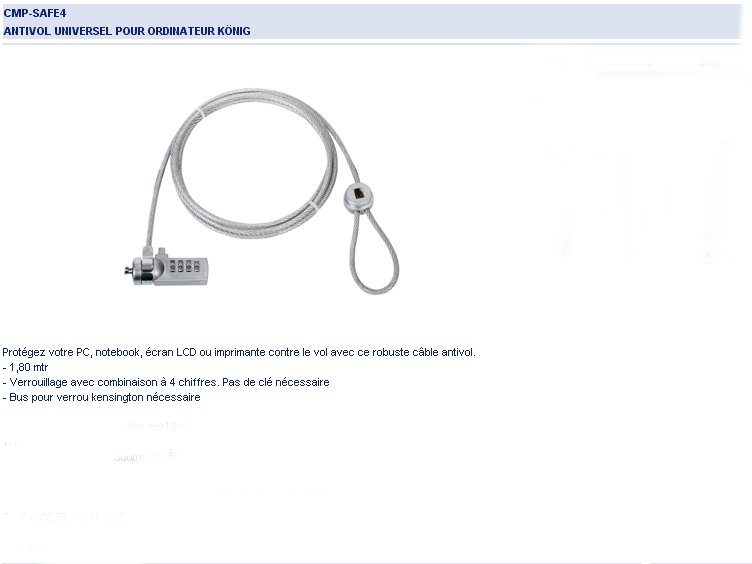 ANTIVOL UNIVERSEL POUR ORDINATEUR VERROU KENSINGTON