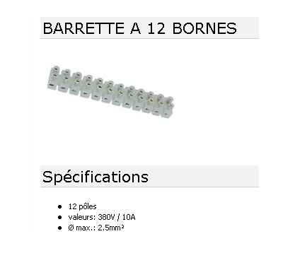 BARRETTE DOMINO 12 POLES 15A 380V