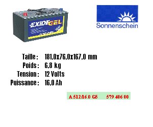> > > > Batterie plomb étanche 12 Volts 16 Ah 181 x 76 x 167 mm 6,8 Kg