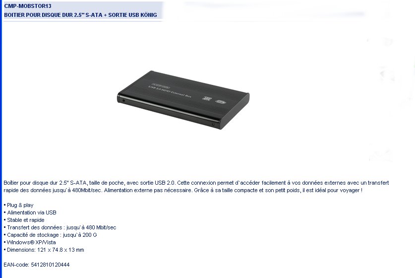BOITIER EXTERNE USB2.0 pour DD 2.5'' SATA