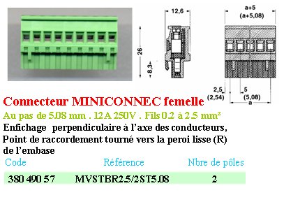 Bornier C.I MVSTBR 2.5/2 ST 5.08 Fiche mcon Femelle droite 2 points