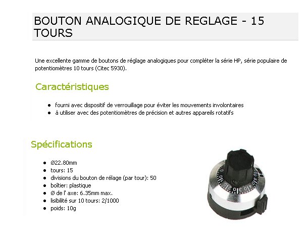 Bouton pour potentiomètre multitours