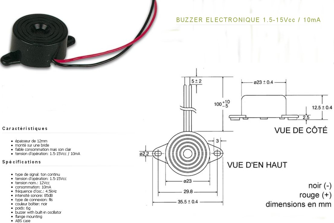 BUZZER ELECTRONIQUE 1.5/15V AVEC OSCIL. SV3