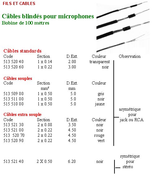 - Cordon audio / Vidéo / Téléphonique / Secteur