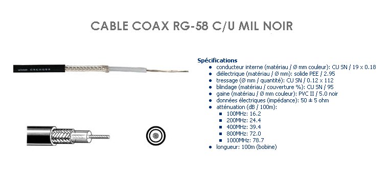 CABLE COAXIAL KX15 / RG58 C/U 4.95mm 50 ohms