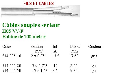 - Cordon audio / Vidéo / Téléphonique / Secteur