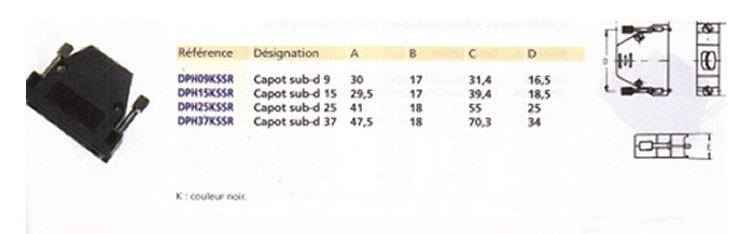 - Capots noir pour SUB D 15 broches avec 2 vis longues permettant un verrouillage rapide et simple - Plastique souple