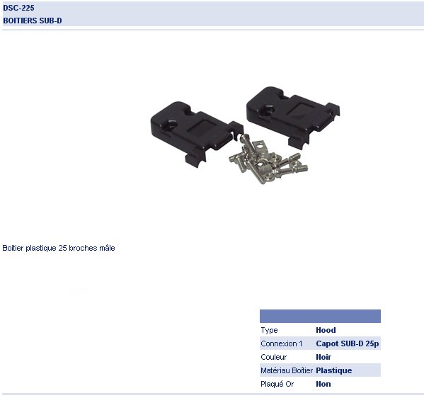 CAPOT SUB-D 25 POINTS PLASTIQUE NOIR A VIS