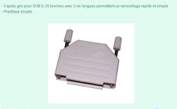 CAPOT SUB-D 25 POINTS PLASTIQUE NOIR SOUPLE VIS LONGUES