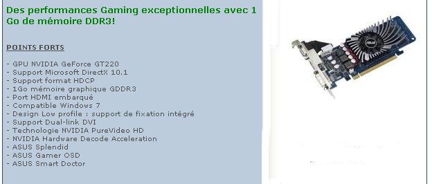 Carte graphique Nvidia GT220 - PCI express 512 Mo DDR3 DVI HDMI