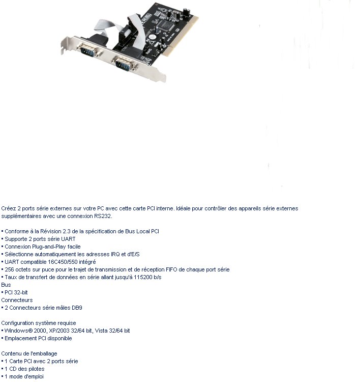 Carte PCI contrôleur 2 ports séries RS232