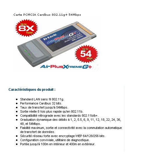 CARTE WIFI PCMCIA 54MBPS 802.11G D-LINK DWL-G650+ ##