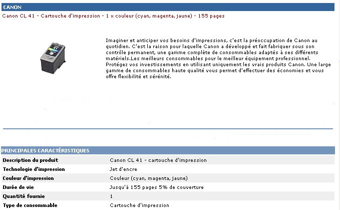 Cartouche d'encre couleur Canon CL-41MP1XX // IP 1600 2200