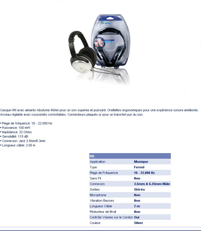 Casque Hifi HQ-HP137HF