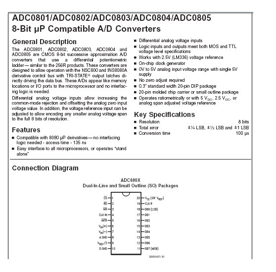 Circuit intégré - ADC0804LCN 8-BIT UP COMPATIBLE A/D CONVERTERS