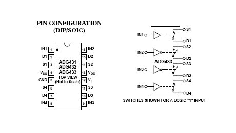 Circuit intégré - ADG433BN LC2MOS Precision Quad SPST Switches DIP16
