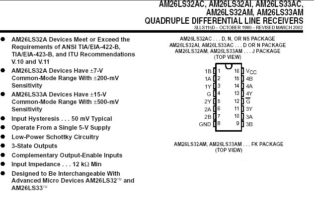 Circuit intégré - AM26LS32ACN CI QUADRUPLE DIFFERENTIAL LINE RECEIVERS DIP16