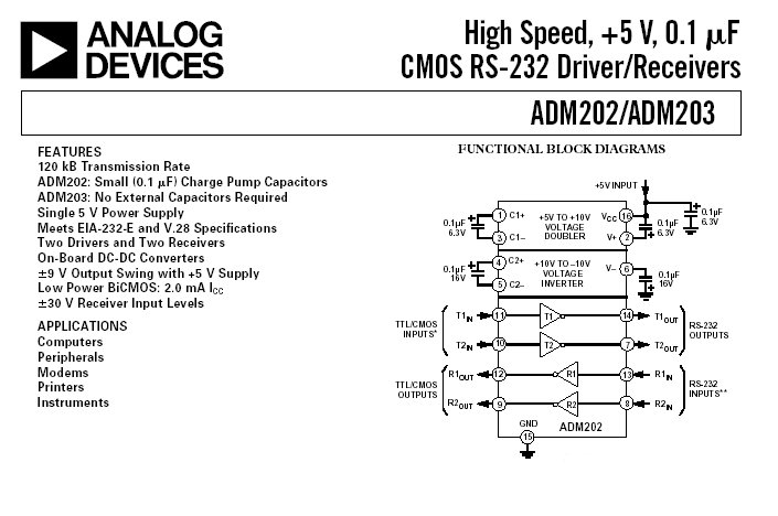 Circuit intégré Cmos driver / receiver - ADM202JN RS232