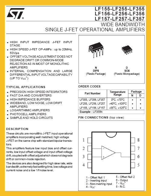 Circuit intégré LF355N JFET Input Operational Amplifiers DIP8