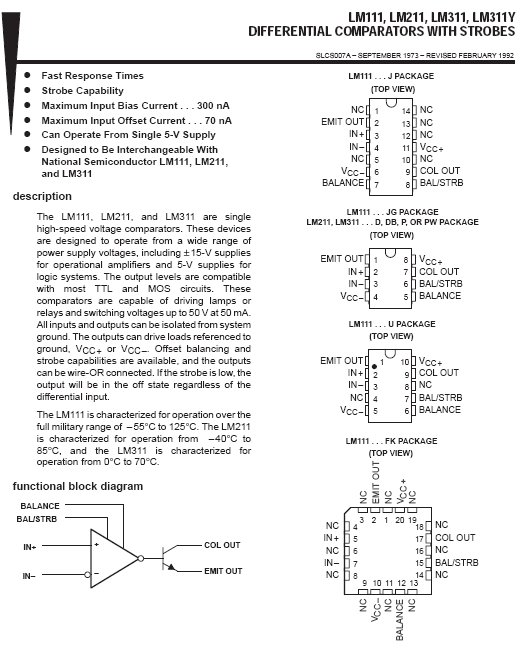Circuit intégré LM311P DIFFERENTIAL COMPARATORS WITH STROBES DIP8