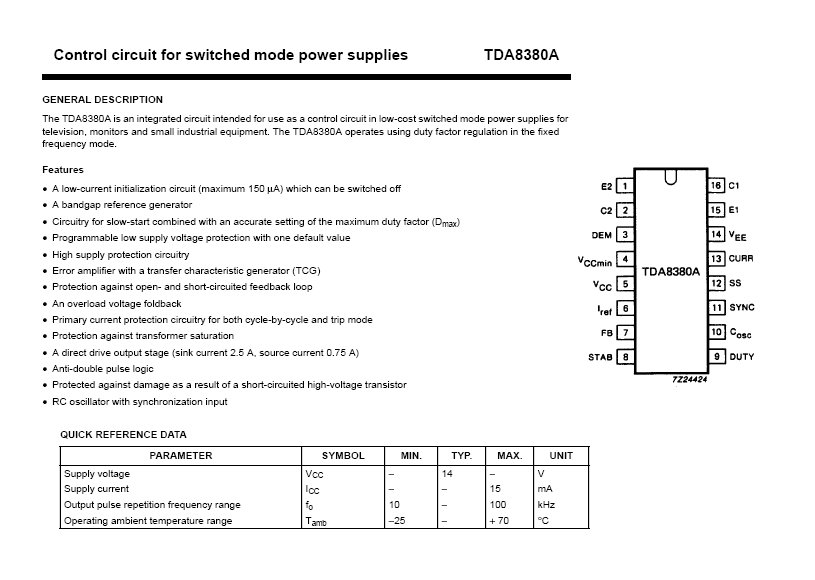Circuit intégré TDA8380A Control circuit for switched mode power supplies DIP16