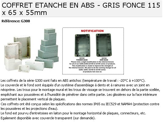 Coffret ABS G308 étanche - 115 x 65 x 55 mm
