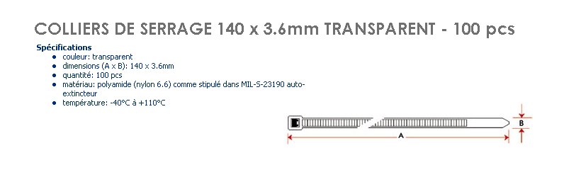 COLLIER DE SERRAGE 140 x 3.6 mm NATUREL paquet de 100 pieces