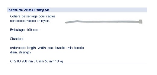 COLLIER DE SERRAGE 200 x 3.6 mm NATUREL paquet de 100 pieces