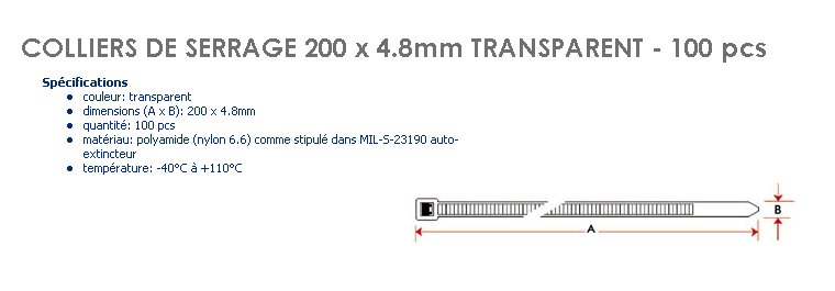 COLLIER DE SERRAGE 200 x 4.8 mm NATUREL paquet de 100 pieces
